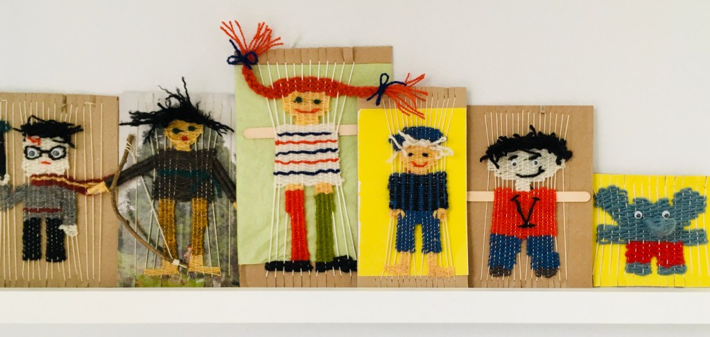 I morgen holder jeg efterårets første workshop med “Væv en sjov børnebogsfigur”. Er du i nærheden af Stubbekøbing og har lyst til at bruge et par timer fra 10.30-13.00 på hyggelig billedvævning, så er der stadig billetter at få på guldbib.dk. Det er for børn fra 9 år og op. Jeg glæder mig så meget til igen at komme ud på landets biblioteker og møde skønne kreative børn.
