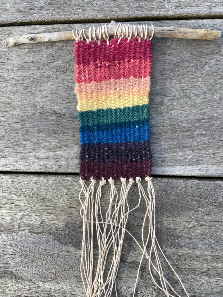 I løbet af sommeren har jeg udviklet to nye workshops. En med at væve minitæpper/ophæng af plantefarvet garn og en nissevæveworkshop. Udvikle – klap lige hesten! Hvor svært kan det være at sætte et par workshops i søen for børn? Lad os tage dem et ad gangen.